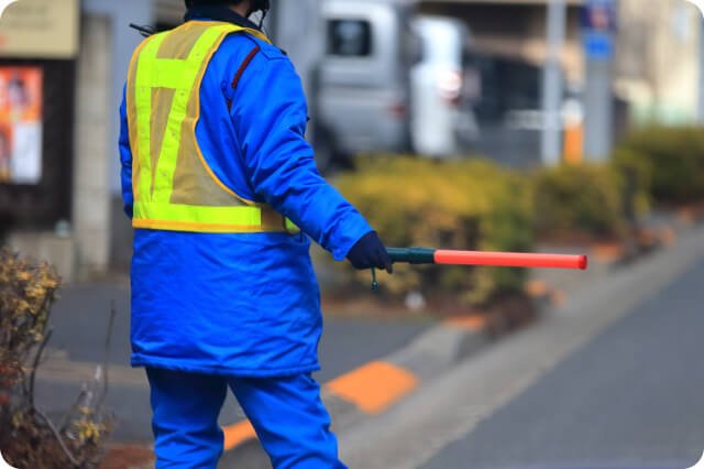 労働安全衛生法に基づく有資格者が作業計画を立案・実施します。作業中は地上に誘導員(ガードマン)を配置して歩行者や車両の安全を確保。落下防止措置も徹底し、万全の体制で事故ゼロを目指します。