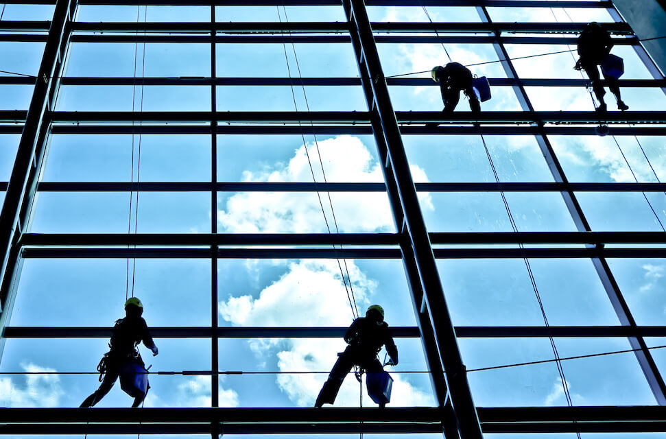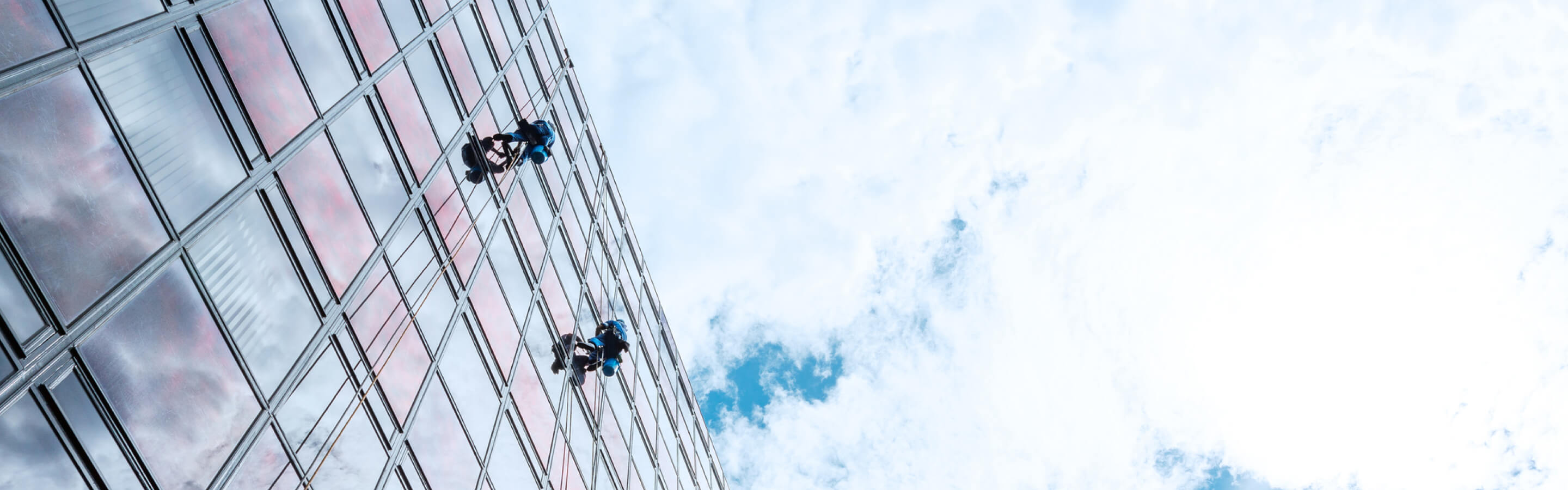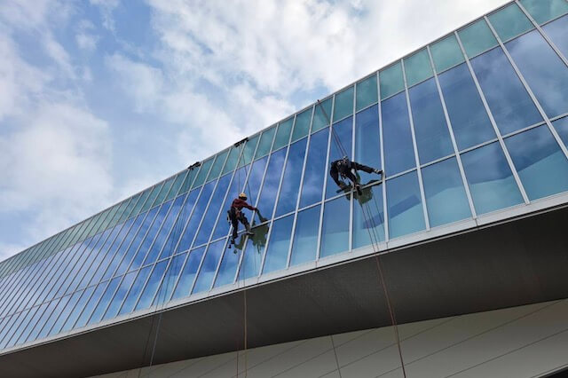 足場が組めない複雑な形状の建物にも対応できますので、ビルオーナー様はもちろん、高所作業にお困りの清掃業者様もお気軽にご相談ください。